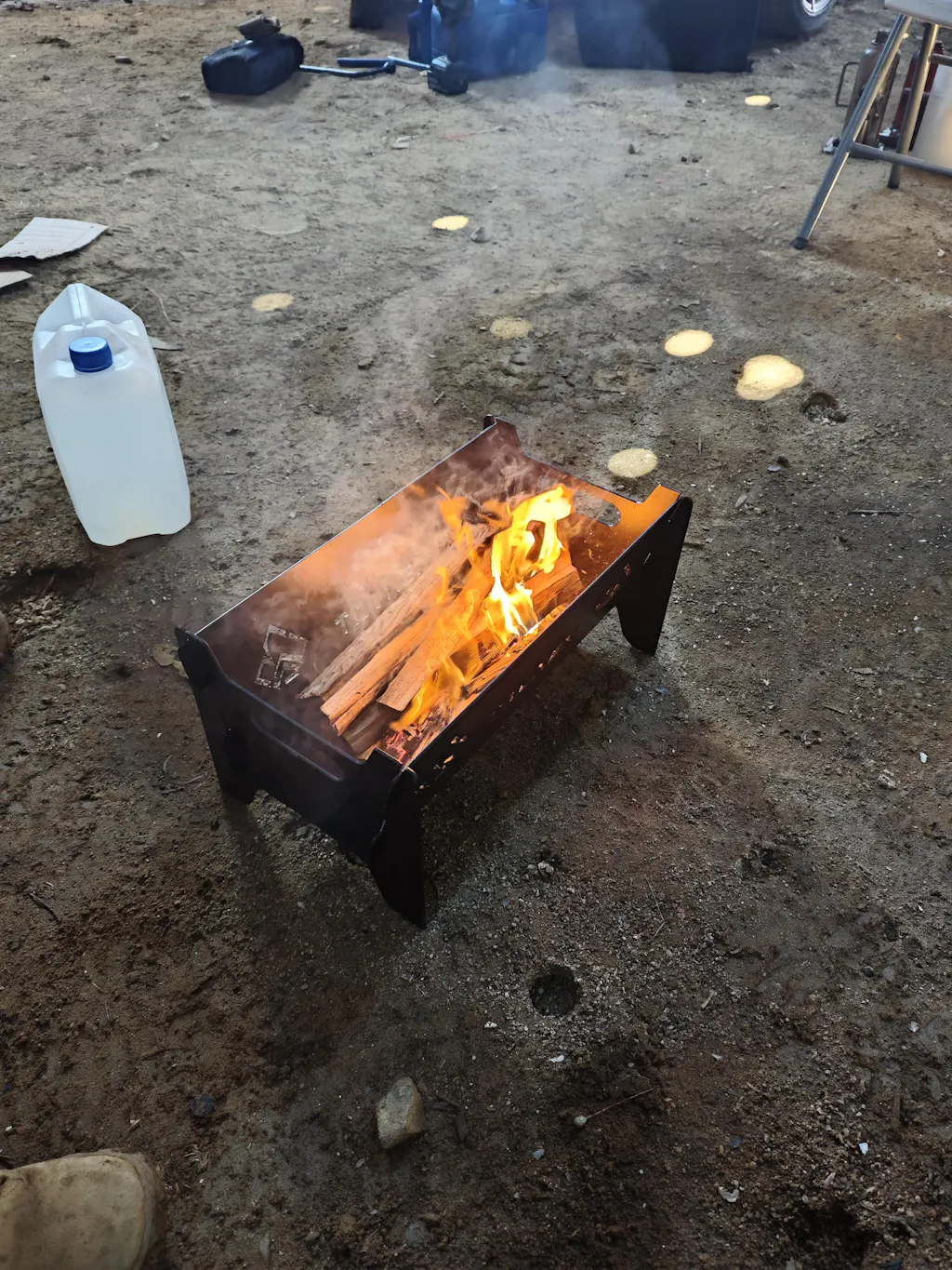- El brasero crea una base de fuego potente, segura y estable.